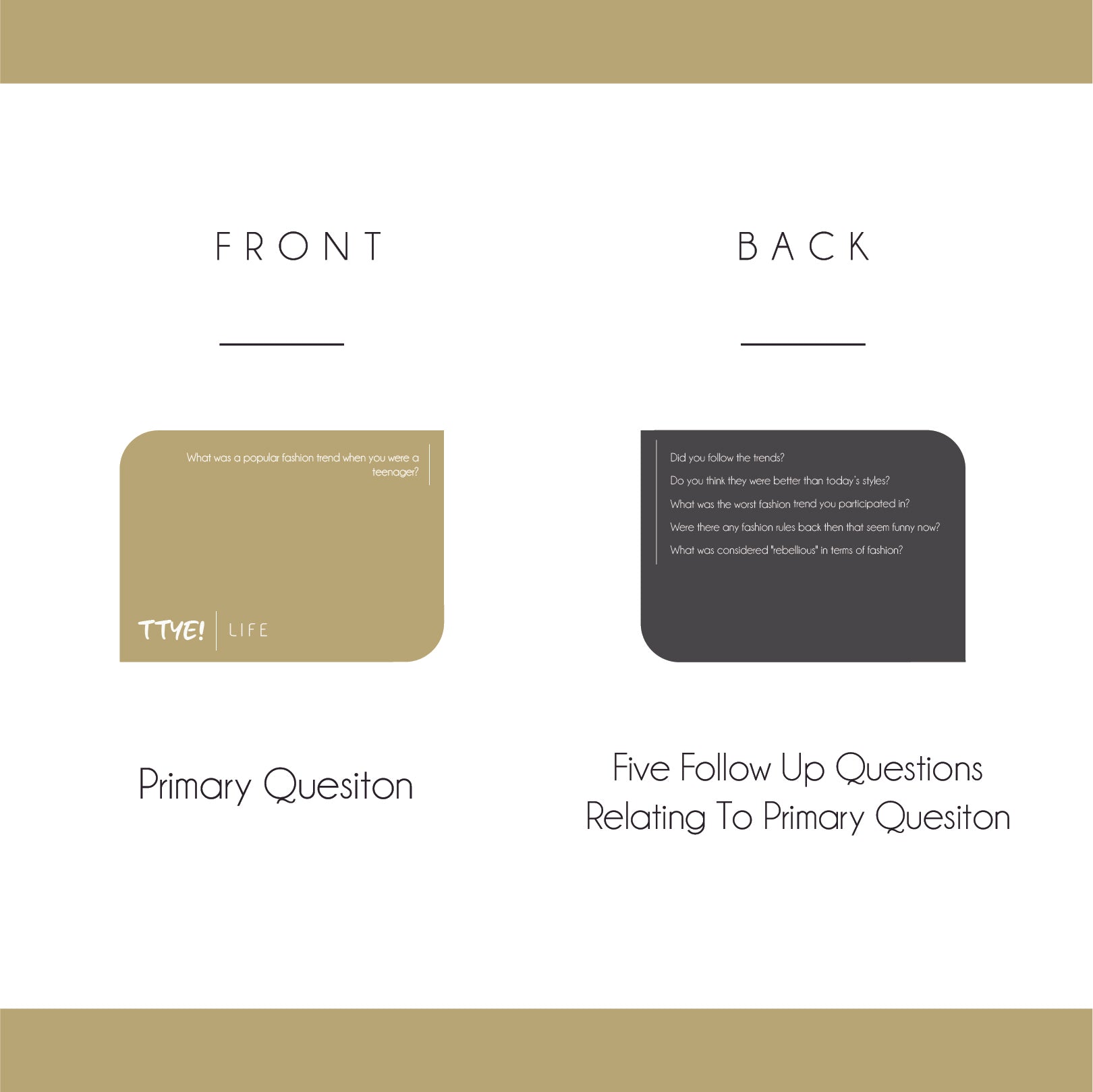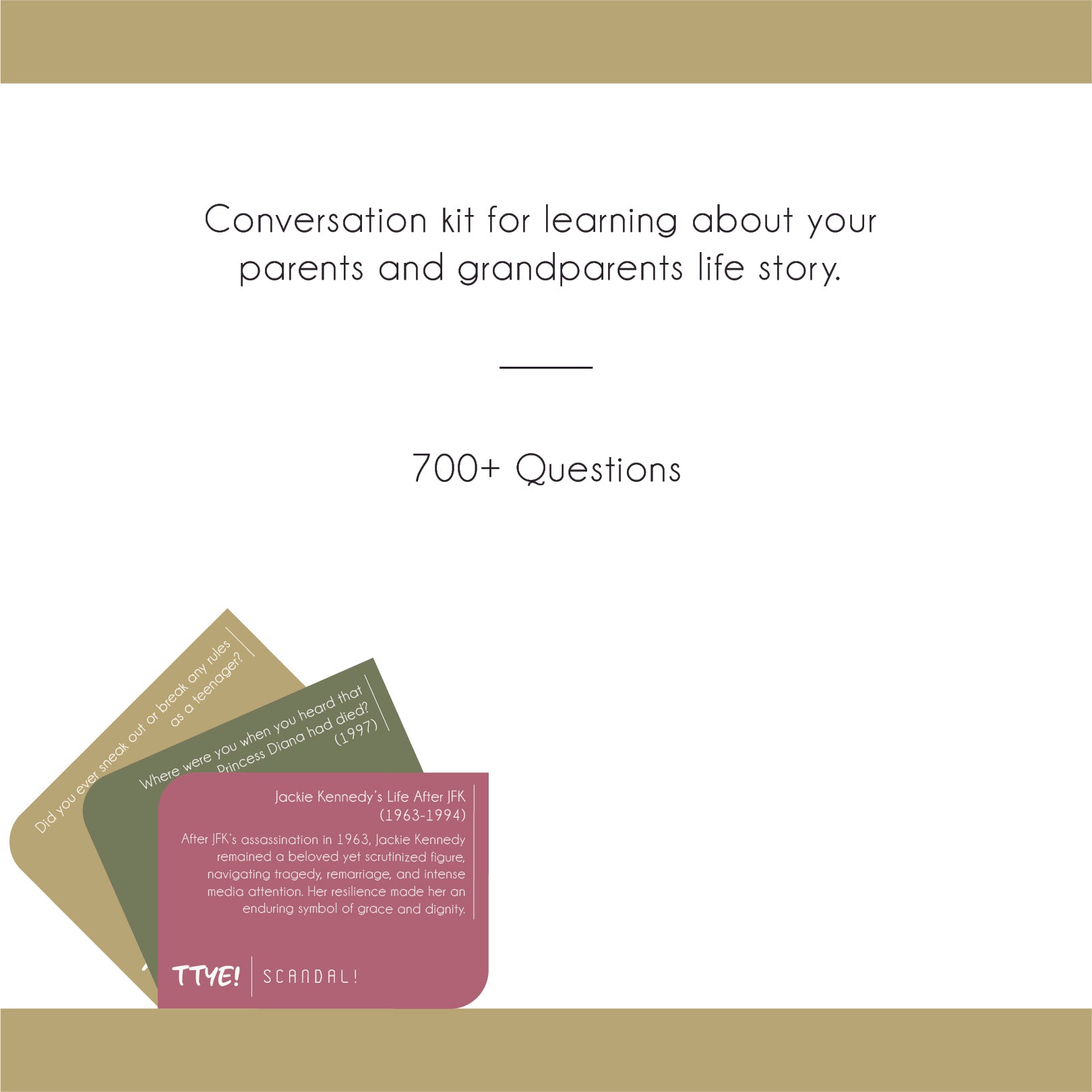 Talk To Your Elders is a storytelling card game designed to unlock and record the real stories behind the people who raised you. Some will make you laugh, some might surprise you—and some might become your favorite memories.